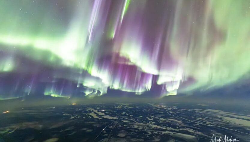 Під час перельоту з Калгарі до Лондона пілот авіакомпанії Метт Мельник зняв фото полярних сяйв, викликаних сильною сонячною радіаційною бурею. Він зробив фото з кабіни літака Boeing 787 Dreamliner на висоті понад 11 км. Полярне сяйво розпочалося над хмарами та тривало під час усього польоту, створюючи неймовірне видовище. Мельник поділився, що цей політ був для нього найвражаючішим за 20 років польотів. Це яскраве та масштабне видовище він зміг побачити з висоти, де не заважали хмари та світлове забруднення землі.