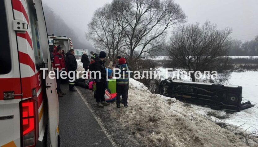 В Закарпатській області мікроавтобус Mercedes Sprinter через ожеледь раптово з’їхав з траси й перекинувся на бік. В ньому перебували діти, що їхали з Києва до Карпат на відпочинок із супроводжуючими дорослими, повідомляє журналіст Віталій Глагола.