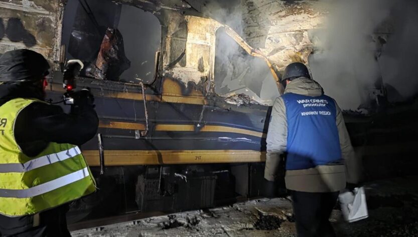 Три російські ударні безпілотники, попередньо, типу Герань-2 вдарили по пасажирському поїзду в Харківській області у вівторок, 27 січня. В результаті атаки є загиблі та потерпілі. Про це повідомляє Харківська обласна прокуратура на своєму Telegram-каналі.