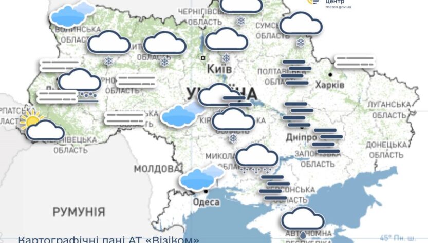 “Хмарно. У північній частині та більшості центральних областей невеликий сніг; температура вночі та вдень 4-9° морозу. На решті території помірний сніг, на сході. південному сході, Полтавщині та на Закарпатті з дощем, ожеледь, налипання мокрого снігу (в більшості південних областей без опадів ); температура протягом доби від 4° морозу до 1° тепла (вдень на Закарпатті та крайньому півдні 1-6° тепла)”, – йдеться у повідомленні.
