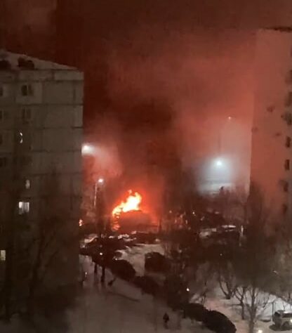 Одне з житлових районів стало місцем, куди впали уламки збитого дрона – пошкодження зачепили паркувальний майданчик біля дев’ятиповерхового будинку. Очевидці кажуть про значні масштаби пожежі як наслідок падіння.