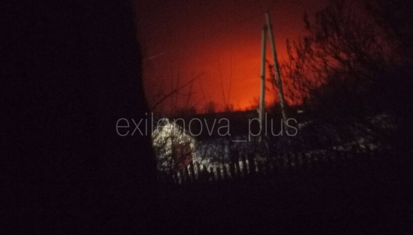 Свідки розповідають, що територія, де прогриміли вибухи, освітлена яскравим полум’ям, кадри з місця розповсюджуються мережею. На записах видно полум’я, що охоплює завод.