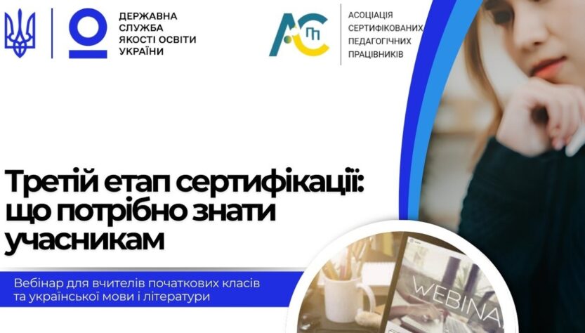 Вебінар для вчителів початкових класів та української мови і літератури, присвячений особливостям проходження ІІІ етапу сертифікації педагогічних працівників у 2026 році.