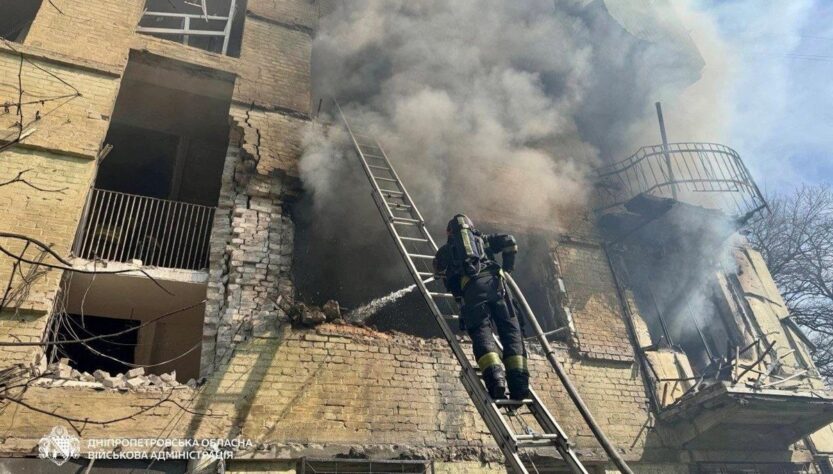 “Пʼятеро людей дістали поранень через атаку росіян на Дніпро. Зайнялися квартири на другому та третьому поверхах багатоквартирного будинку”, – вказано в повідомленні.
