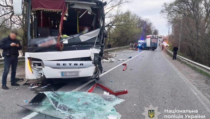 Увечері в середу, 15 квітня, у Хмільницькому районі Вінницькій області сталась аварія за участі автобуса та вантажівки. Одна людина загинула, кілька людей постраждали. Про це повідомила поліція Вінницької області.