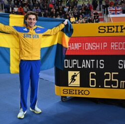 26-річний шведський легкоатлет Арман Дюплантіс святкує перемогу на чемпіонаті світу в приміщенні зі стрибків із жердиною вчетверте поспіль. Турнір світового …
