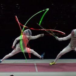 На турнірі World Fencing League у Лос-Анджелесі презентують систему від японської Rhizomatiks, що в реальному часі відстежує рухи клинків без …